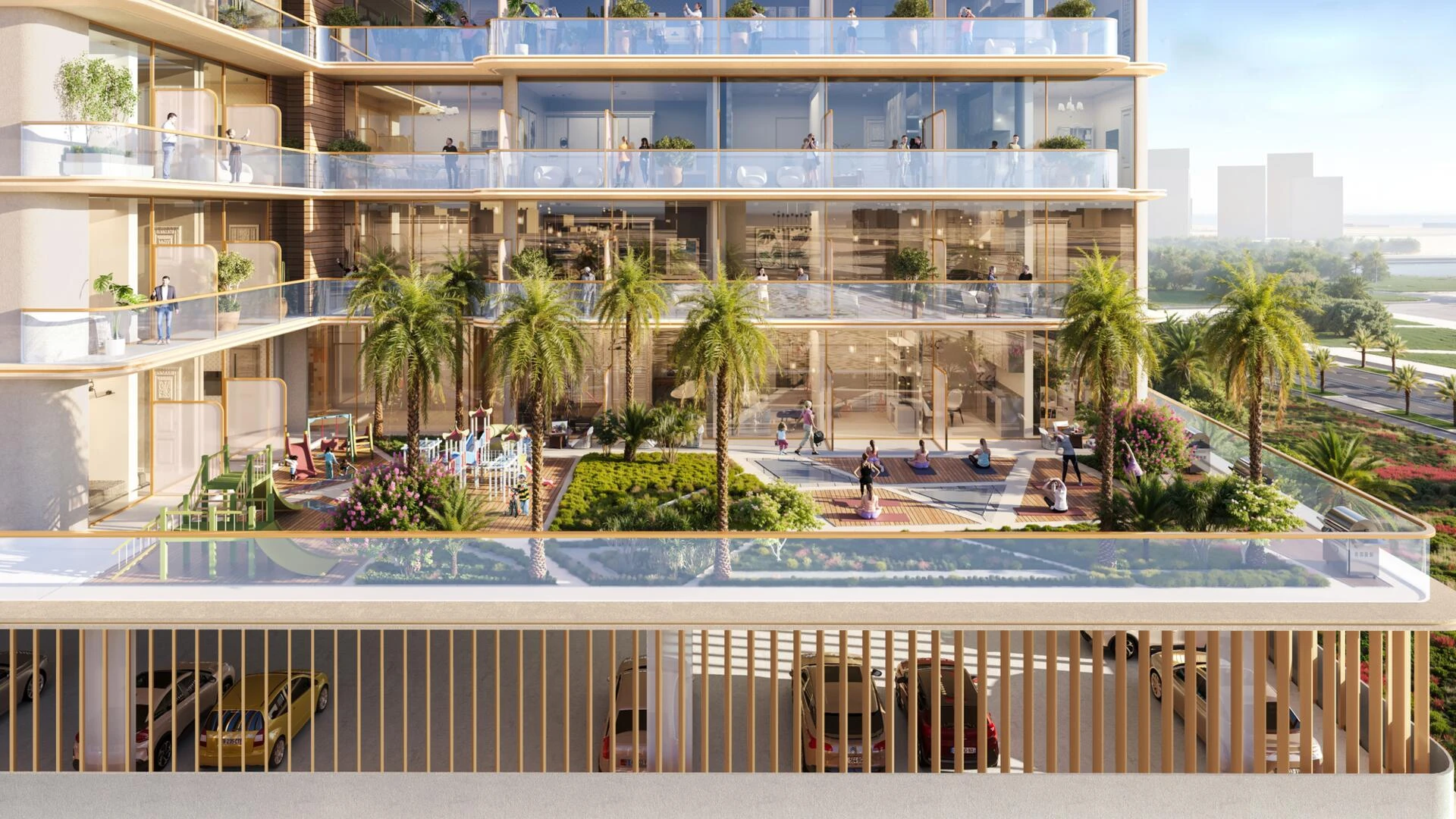 Zažijte vyšší úroveň života s kolekcí exkluzivního, resortního zázemí — od střešního nekonečného bazénu a špičkového fitness centra po klidnou yoga terasu. Dětské herní zóny vytvářejí přátelské a inspirující prostředí pro celou rodinu.