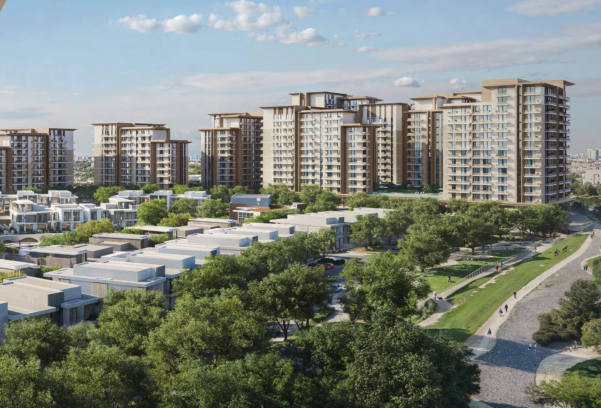 Expo Valley Views je moderní rezidenční komunitou situovanou v živém srdci Expo City Dubai, kde architektura harmonicky splývá s přírodním krajinářstvím. Zde každý detail reaguje na jedinečné záhyby a kontury terénu, vytvářející obytné prostory, které se cítí jak vyvýšené, tak organicky propojené s okolím.