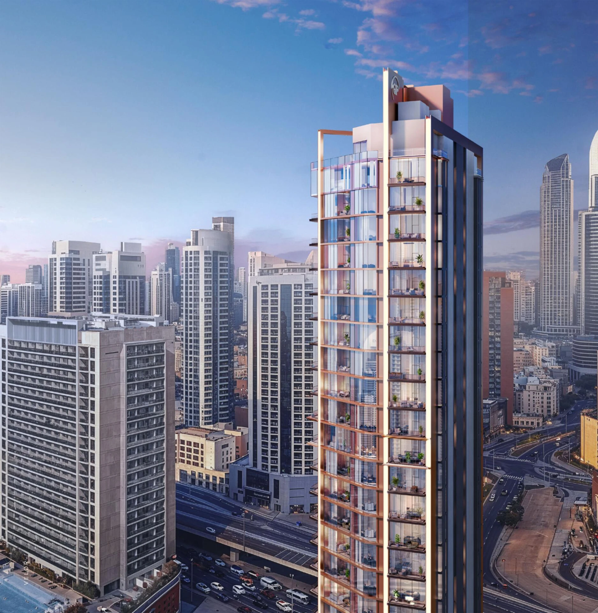 VELOR stojí jako maják sofistikovanosti mezi nejznámějšími památkami Dubaje a nabízí obyvatelům exkluzivní přístup k vyvýšeným životním zážitkům. Zde je každý aspekt pečlivě zpracován, ztělesňující životní styl definovaný výjimečným vkusem a neochvějným usilováním o dokonalost. Výrazný design VELORu vás zve k objevování života, kde každý detail odráží rafinovanost a eleganci.