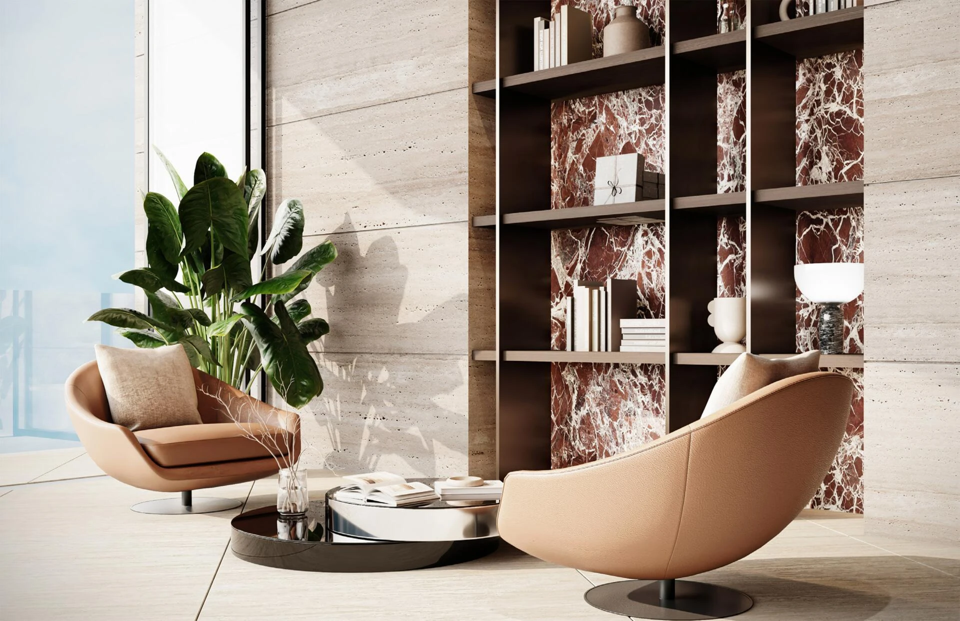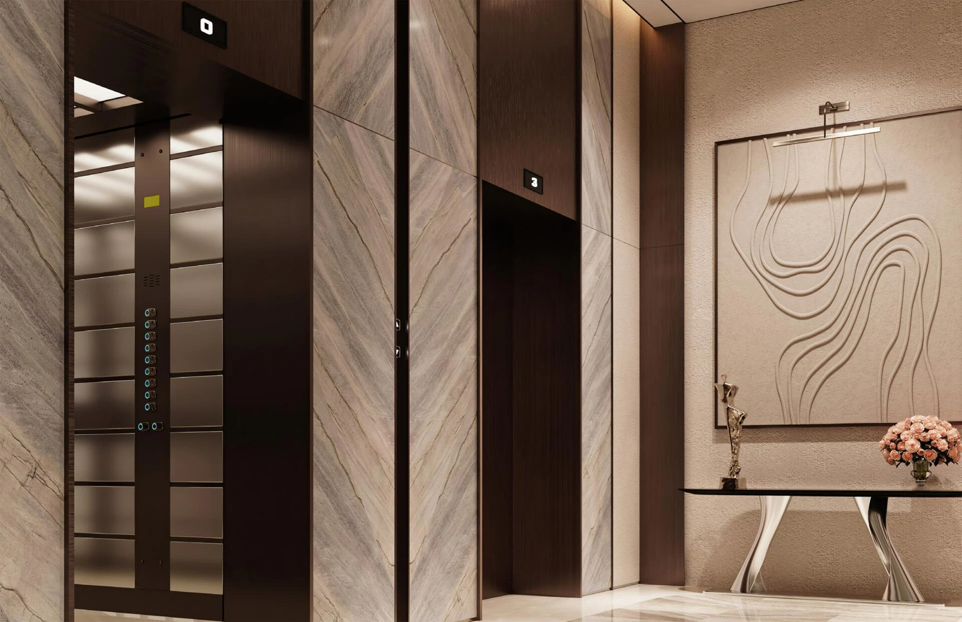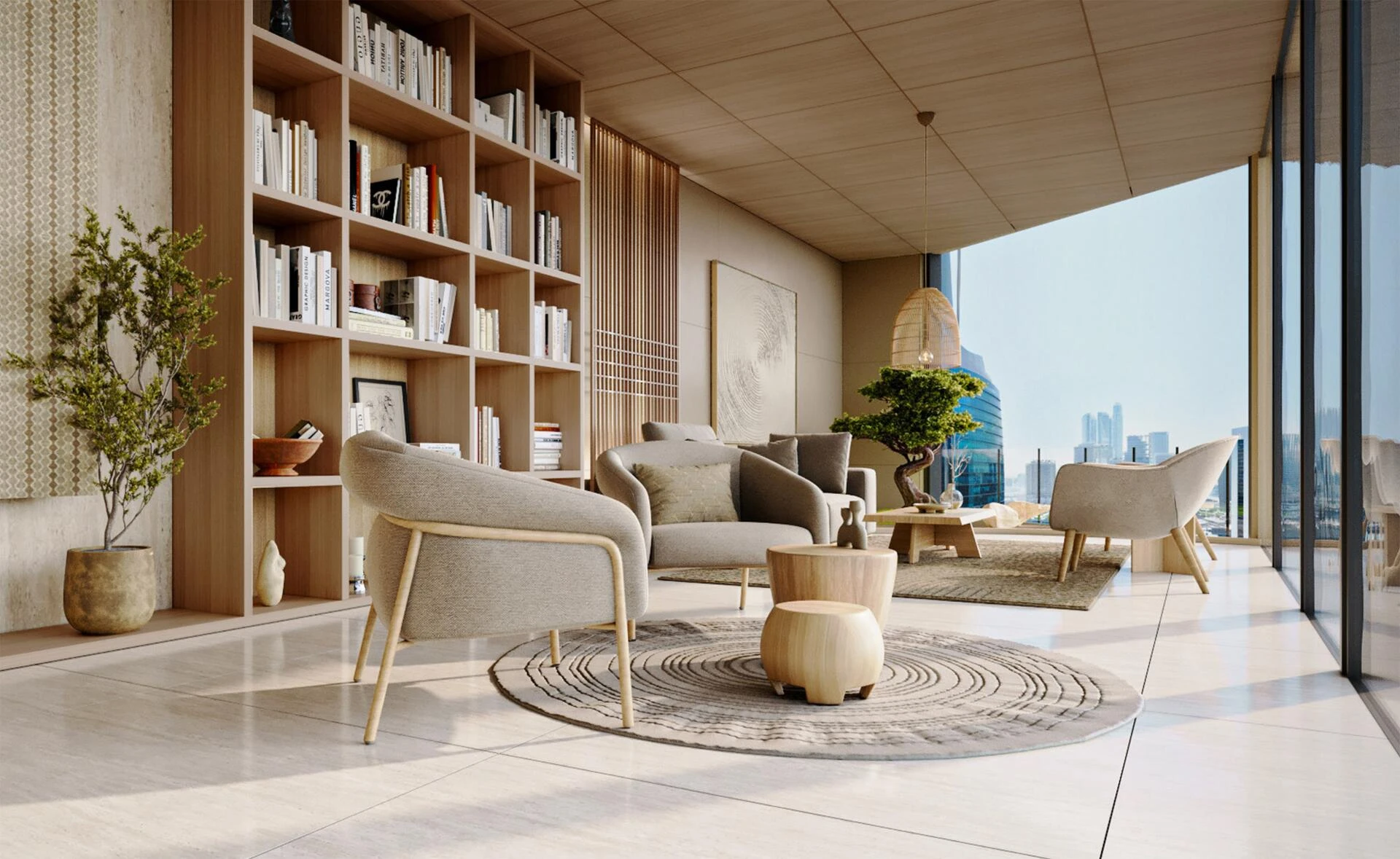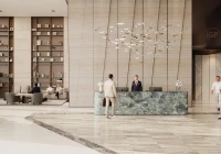 Když vstoupíte dovnitř, přivítá vás lobby, které vyzařuje klid, sofistikovanost a jemnou velkolepost. Sluneční světlo proudí skrze okna od podlahy ke stropu a osvětluje luxusní materiály a vynikající povrchové úpravy. Klidná recepční oblast okamžitě nastavuje pozvání a poklidnou atmosféru, nabízející pohled na pečlivě navržené prostory, které se nacházejí po celé budově.
