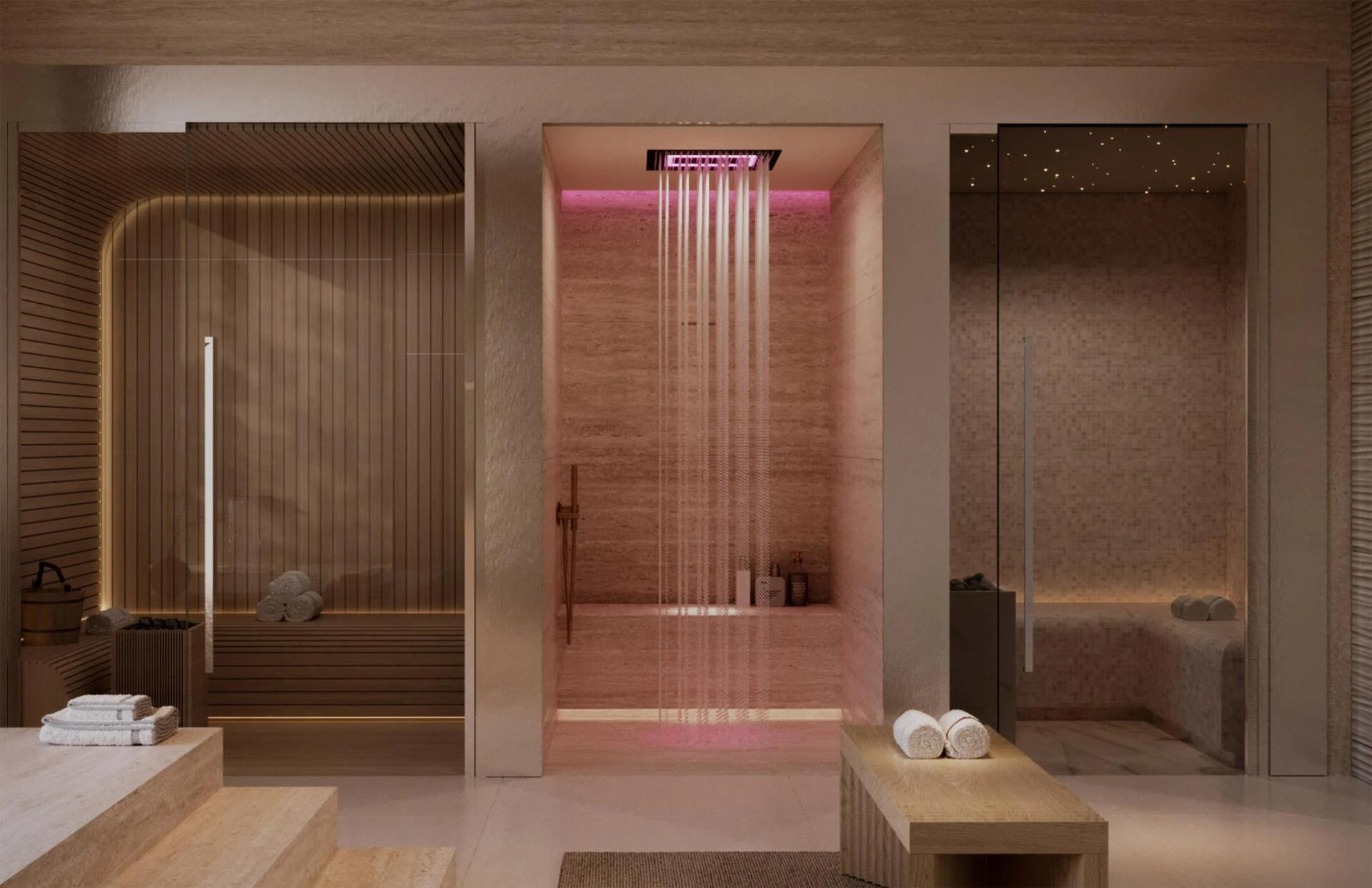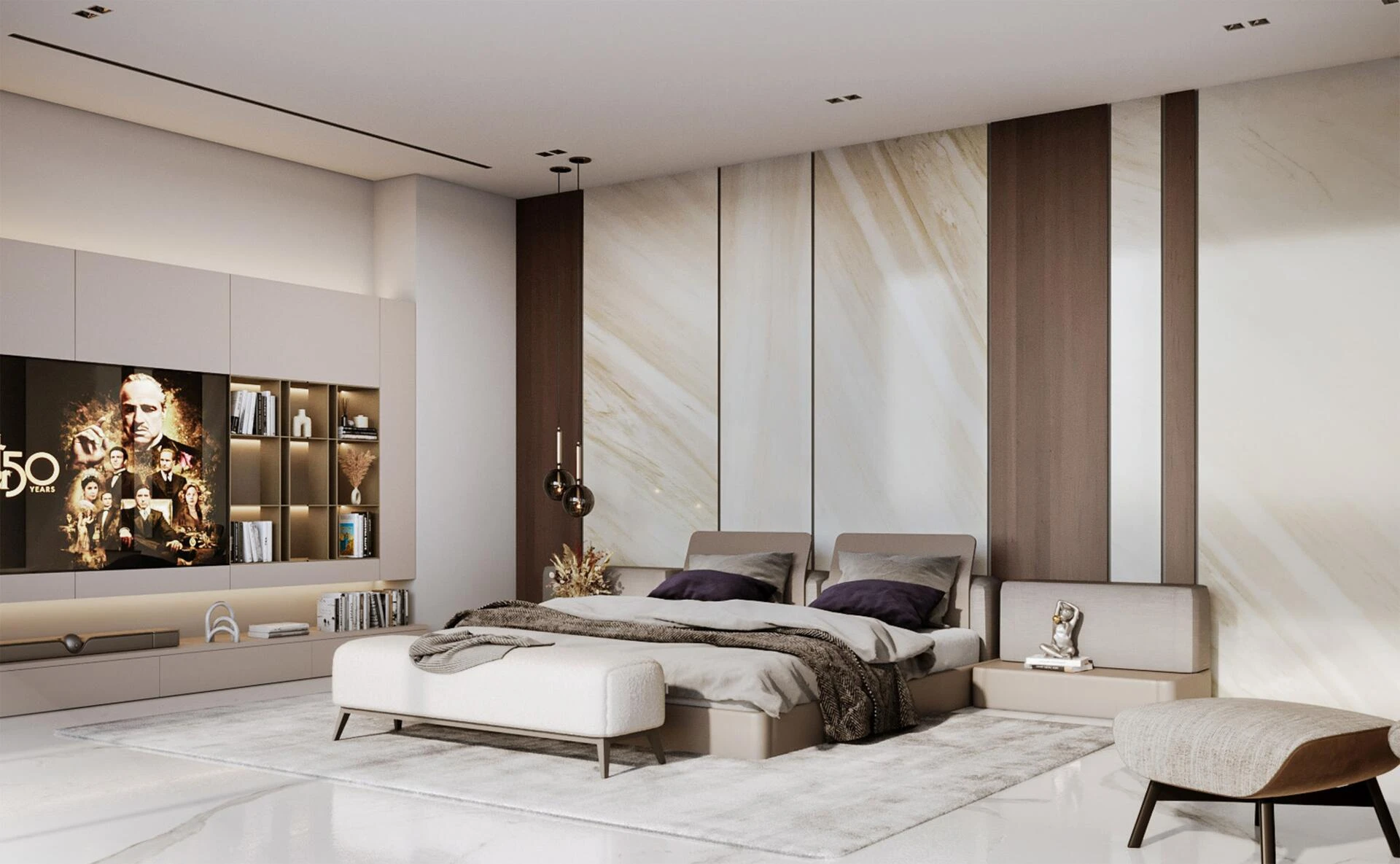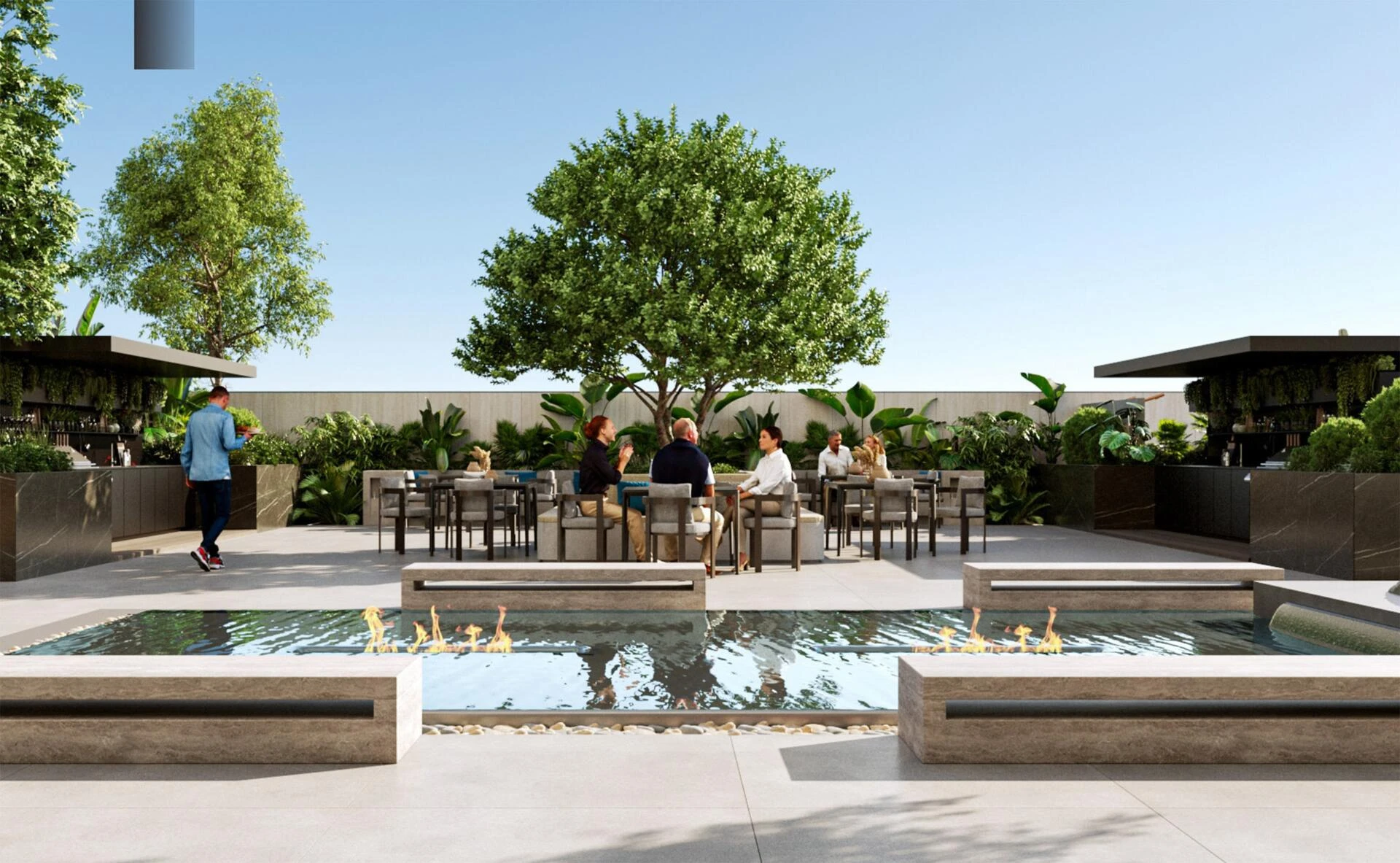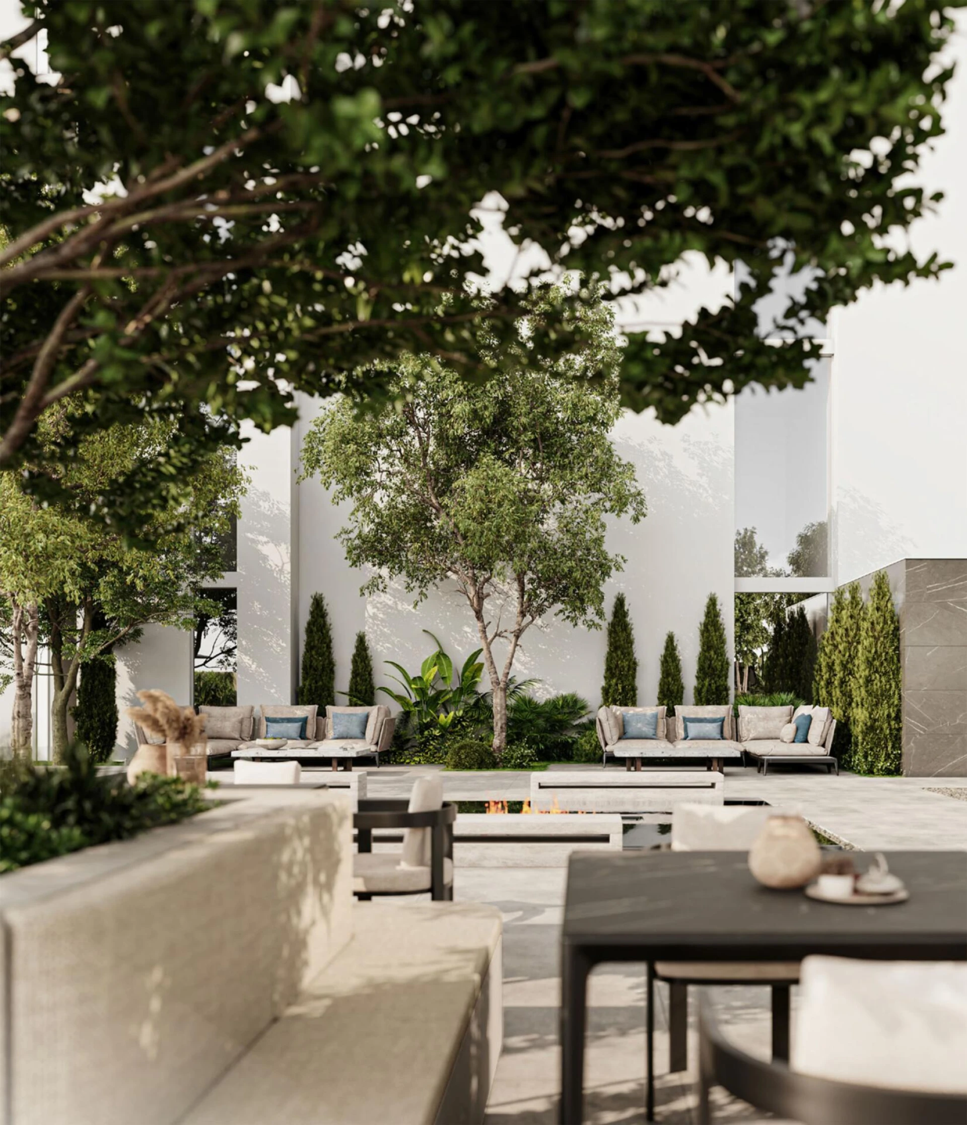 Když vstoupíte dovnitř, přivítá vás lobby, které vyzařuje klid, sofistikovanost a jemnou velkolepost. Sluneční světlo proudí skrze okna od podlahy ke stropu a osvětluje luxusní materiály a vynikající povrchové úpravy. Klidná recepční oblast okamžitě nastavuje pozvání a poklidnou atmosféru, nabízející pohled na pečlivě navržené prostory, které se nacházejí po celé budově.